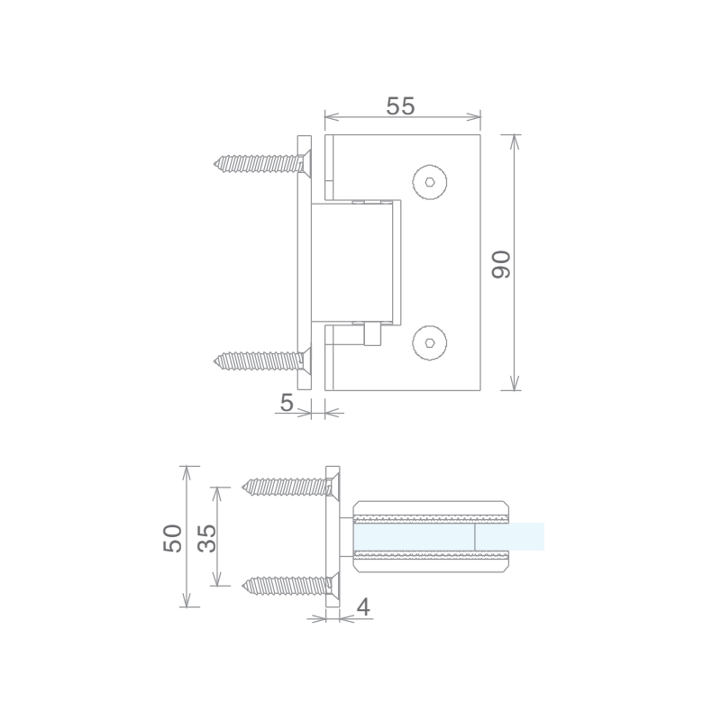 Name: 90° Shower Door Hinge(W-G)