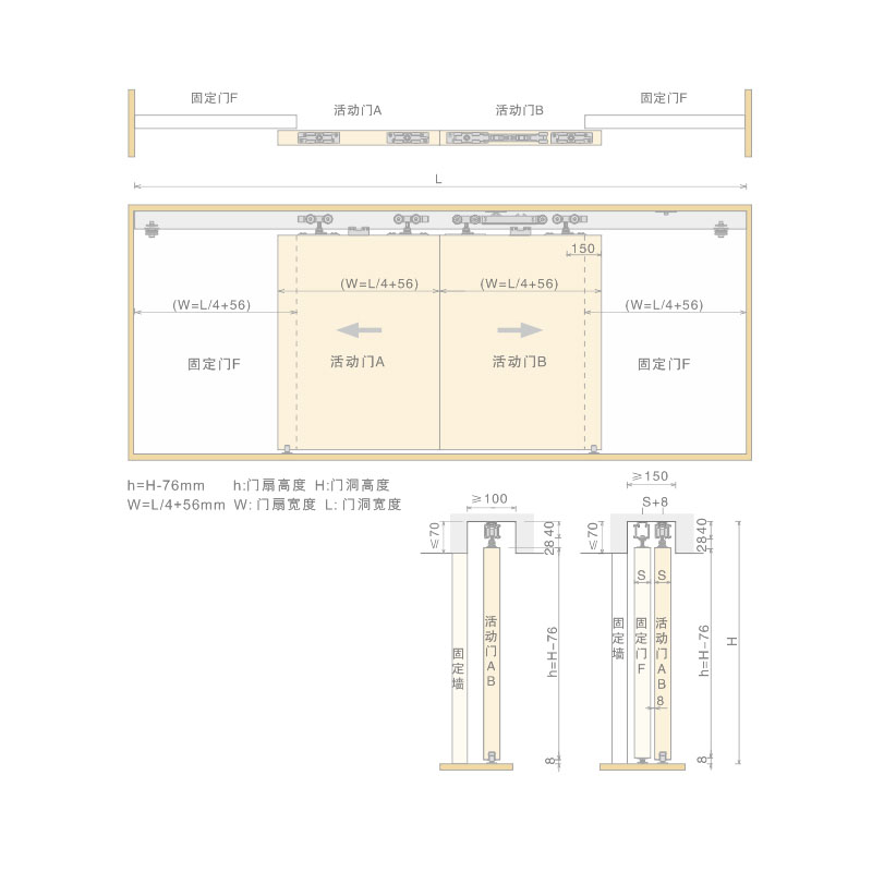 产品名称:阻尼双向两联动移门吊轮 适用标准:符合《QB/T4597-2013移门轮轨通用技术标准》 适用范围:适用于同步反向开启双扇推拉门 闭合类型:内置阻尼缓冲闭合装置 适用门厚:40-45mm 适用门宽:≥600mm 最大承重:80KG/1扇 高度调节:±2mm 配套吊轨:SW-22 功能描述:通过把联动门扇推拉到一侧得到足够大的空间轻松拉动单扇门,助力其它1扇门开启或关闭,轻松顺滑无噪音 精品福利视频.